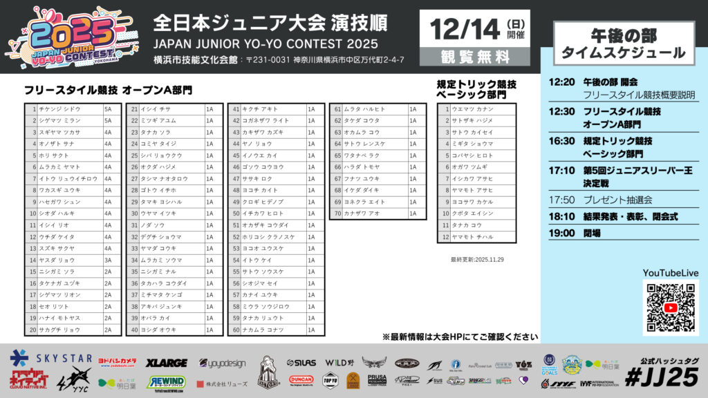 | 11:50 | 初心者講習&ヨーヨー検定 | 0:30 |