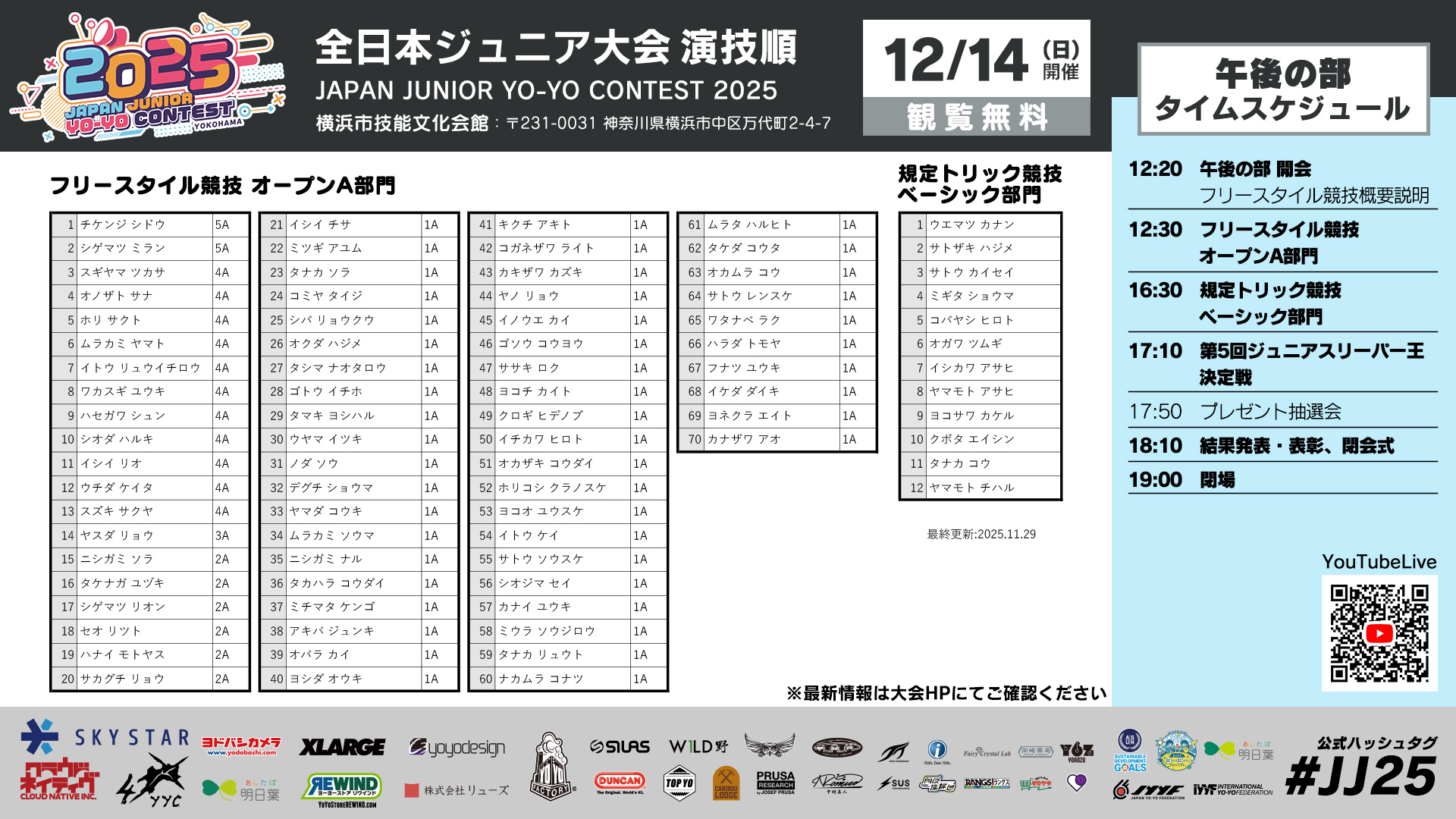 | 12:20 | 午後の部開会:フリースタイル競技概要説明 | 0:10 |